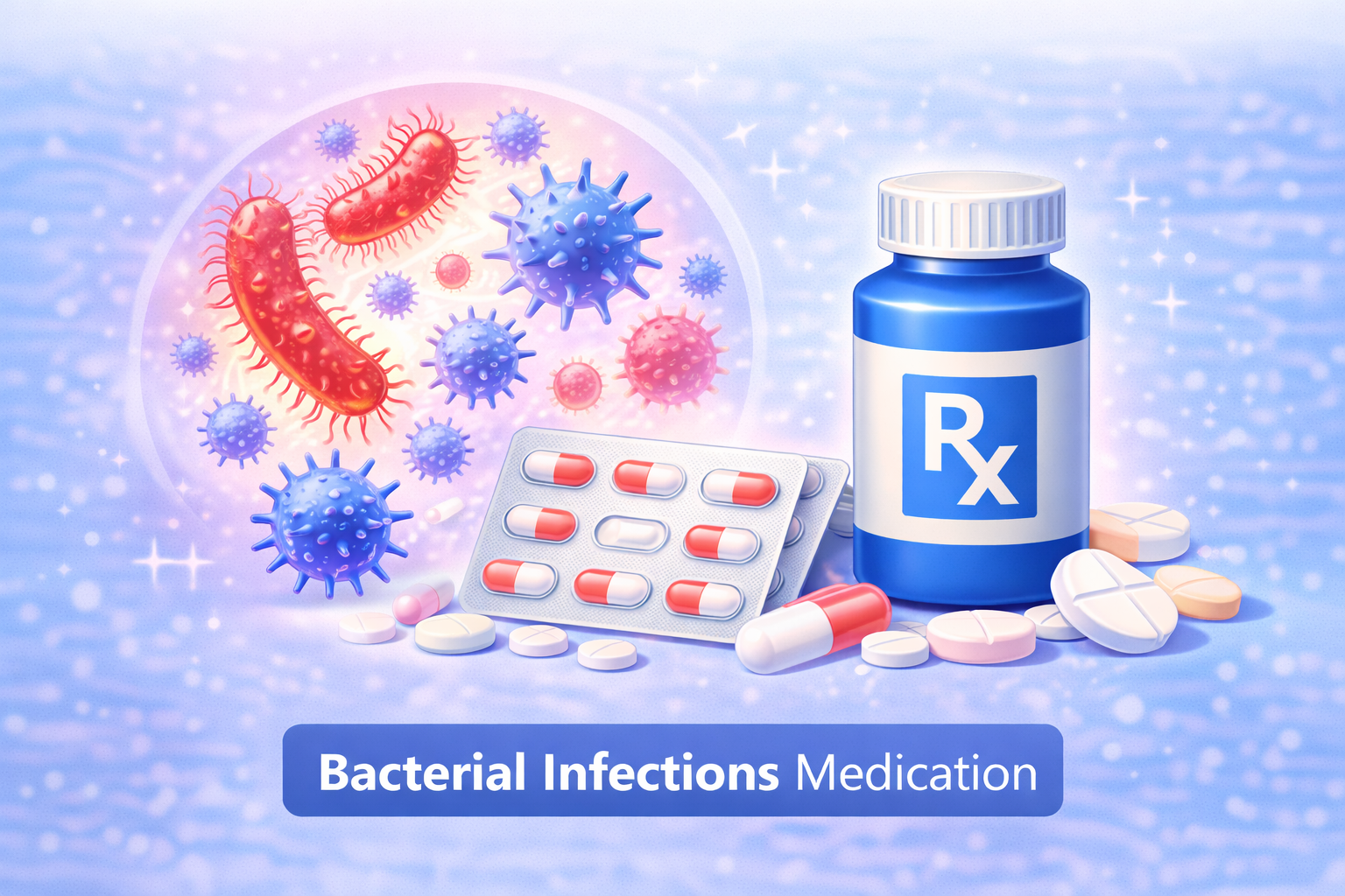 Bacterial infections medication is used to treat infections caused by harmful bacteria in the body. These infections can affect different areas such as the skin, respiratory system, urinary tract, and digestive system.